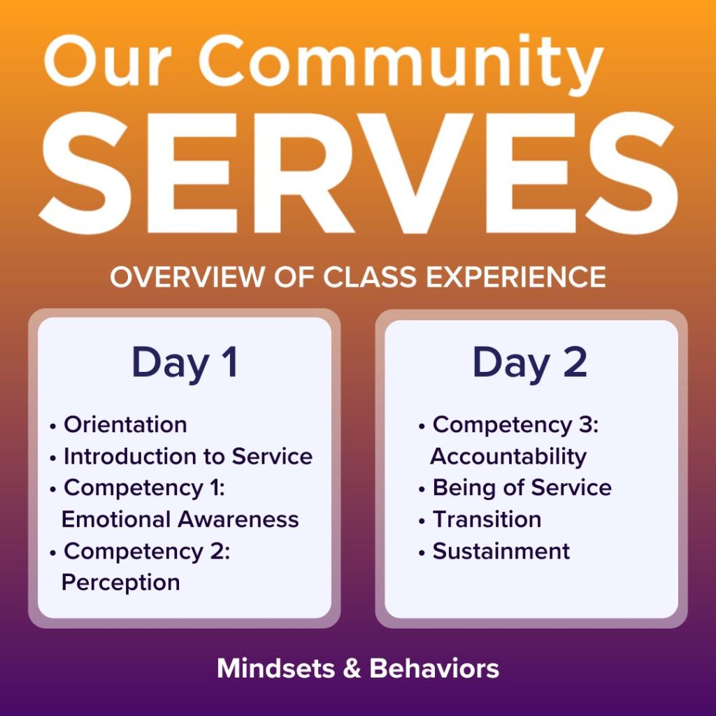 Our Community Serves is the second foundational class, focused on shifting mindsets from me-centric to we-centric. By emphasizing emotional intelligence and fostering a culture of service, this class helps participants develop self-awareness and the skills to create an environment where collaboration, trust, and shared purpose thrive. It lays the foundation for building a culture of accountability and inspires collective success, encouraging people to work together—not just for results but for each other.