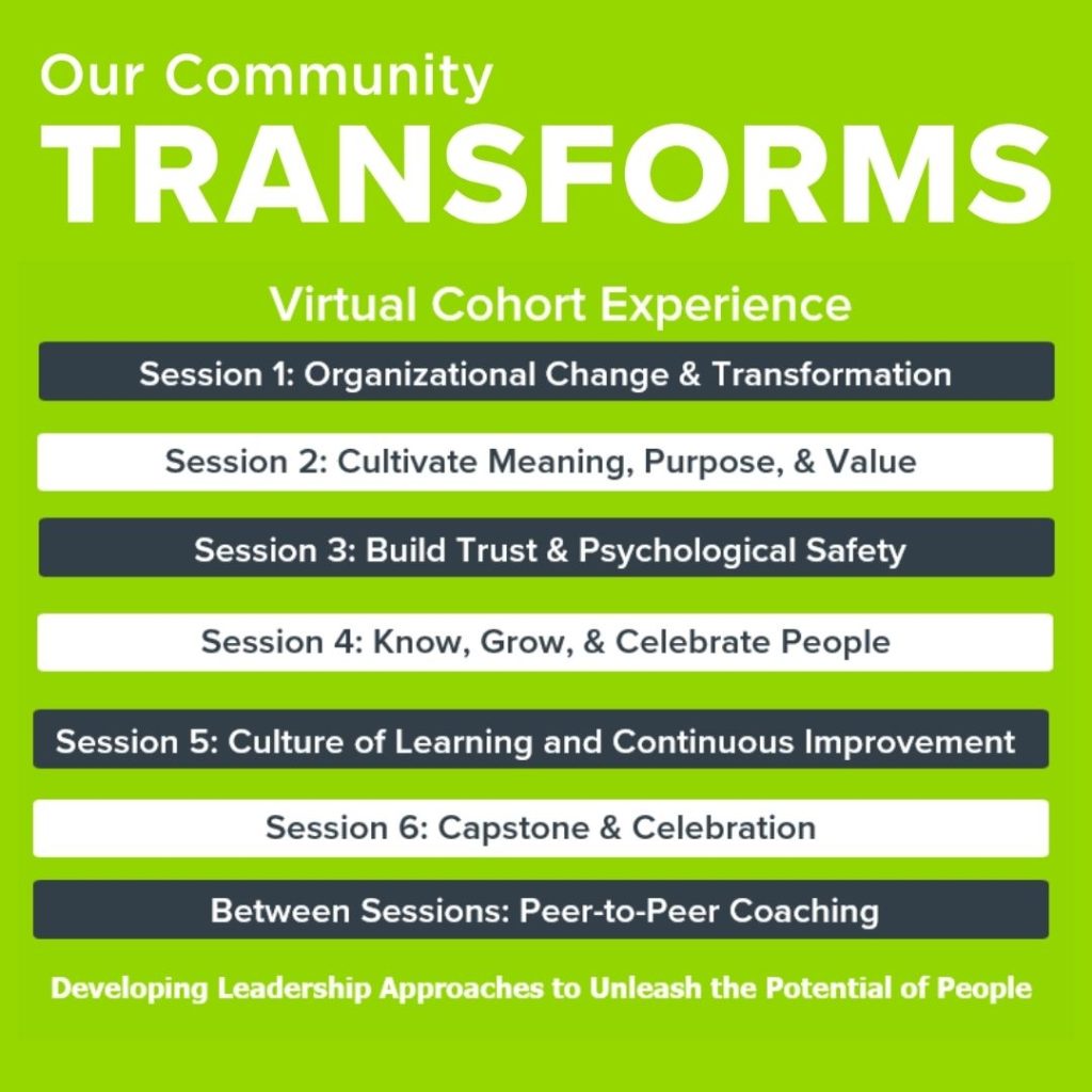 Our Community Transforms is the third foundational class, designed to help organizational leaders develop strategies for transforming their workplace culture. This class provides leaders with the tools and insights needed to drive meaningful change within their organizations. Participants will explore the Six Strategies of Caring Workplaces and walk away with a strategy to create an organization where team members and the workplace flourish.